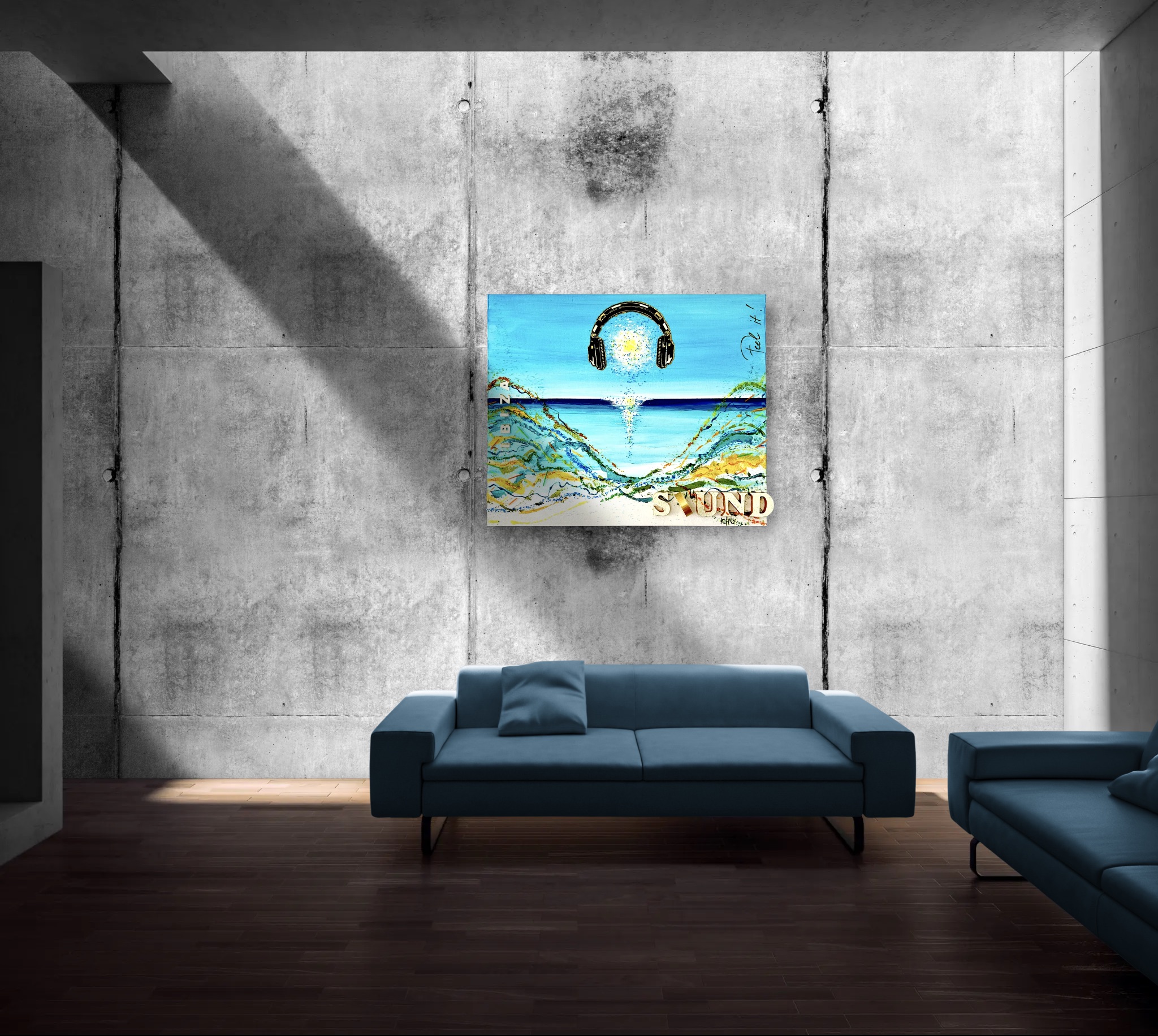 At the center: a golden sun wearing headphones.